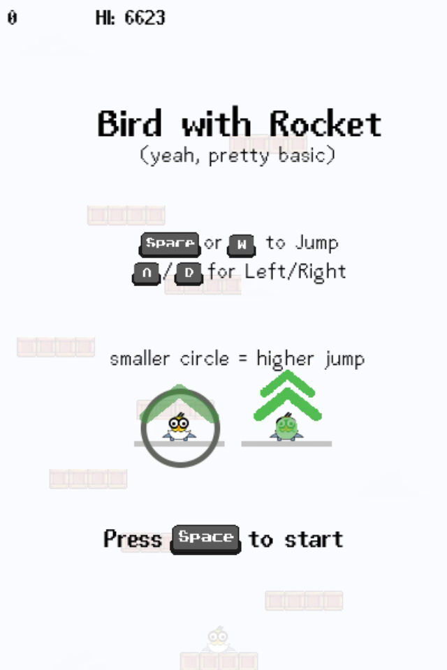 "Bird with Rocket" is a highscore based game, where you have to time your jump; land on platforms & powers, avoid obstacles to keep going.