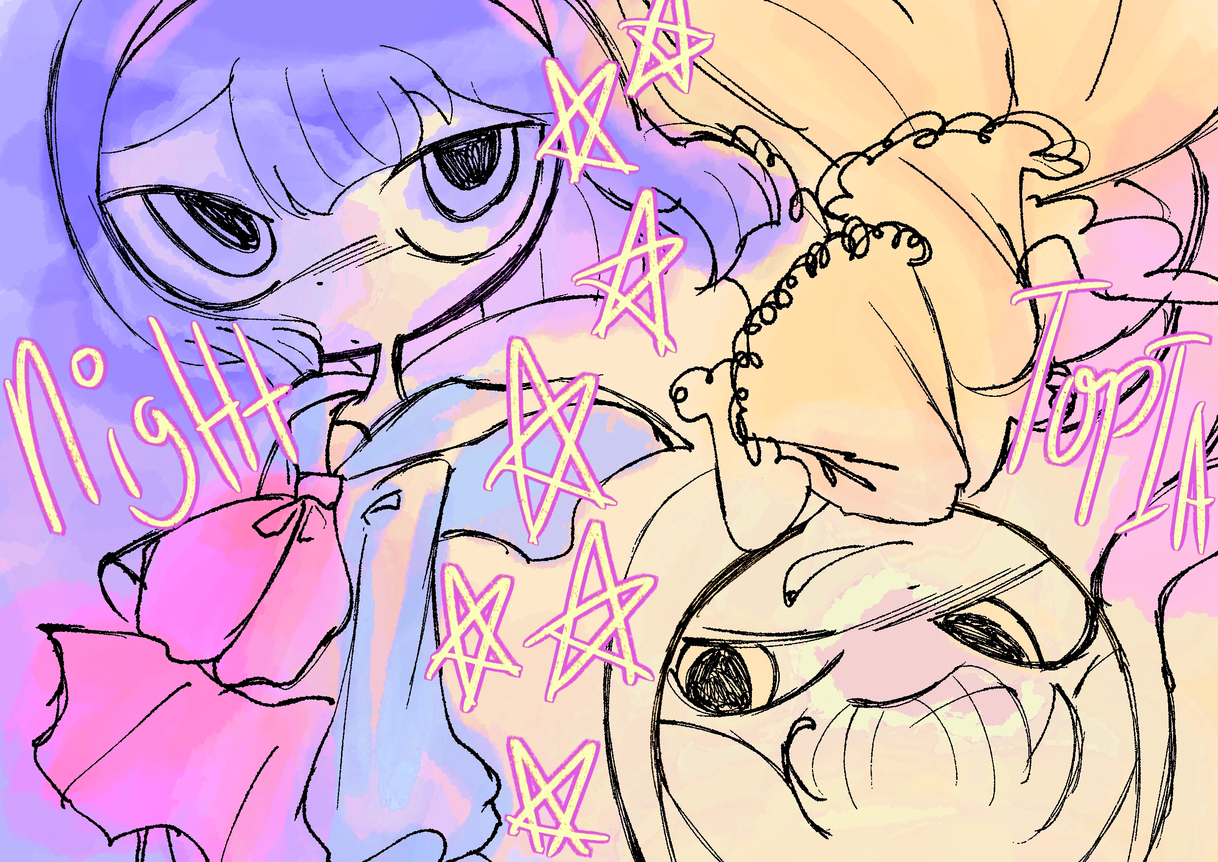 SURPRISE SUPRISE!!! I'm making a collab game for NaNoReNo alongside itch user https://feltonthesquirrrel.itch.io/ called NIGHTOPIA!!! It's a vn/walking sim mix about a girl who lives in a world known as NIGHTOPIA!! Though, one day, a dark secret about the world is revealedm and she becomes deadset to find out the truth behind the world itself! Though...is she *really* ready to find the answer? Will she ever be? Are YOU even ready??!? Cuz you better be!!! Since this game's nearing the end of it's production and'll (hopefully) be out by the end of this month!!!!