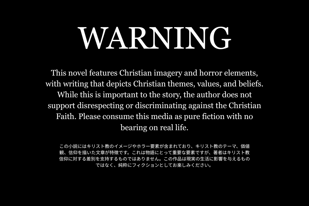I am writing a short VN, not NSFW, with written violence and minimal/censored violence, however it features Christian themes and Religious Psychosis. I have an unskippable warning at the beginning of the novel addressing this (See below)
