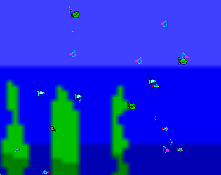 A simulator where fish swim around uselessly. Now you can feed them food by clicking on the screen!