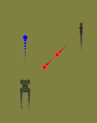 I also managed to bug out the particle system, which turned out to increase the frame rate a lot. So I dropped the smoke trail from the bullets and left the tire trails. Those bullets looked like tadpoles anyway.