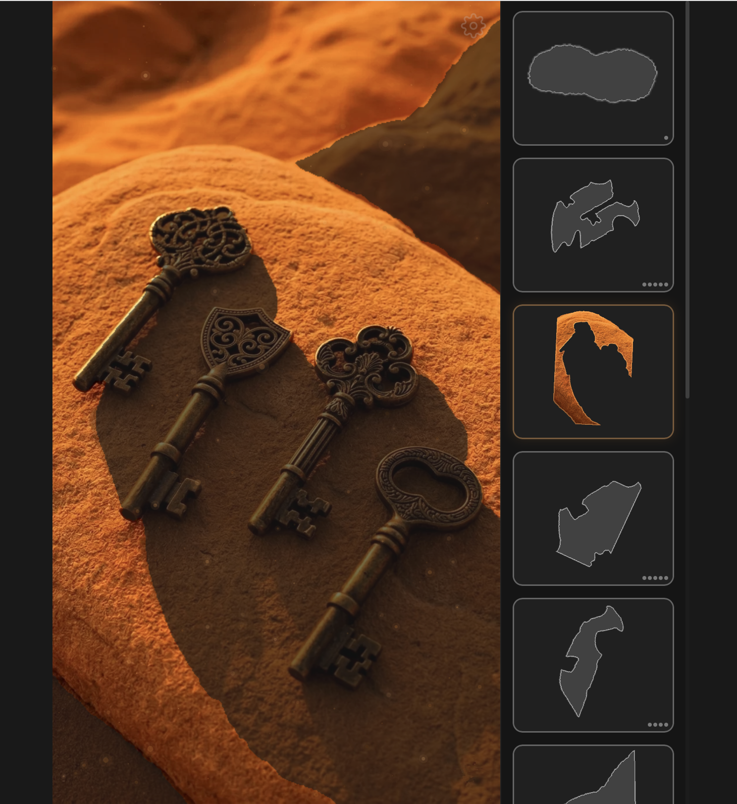 Each scene hides voids — negative spaces shaped by the objects around them. Select a contour card, find where it fits on the scene, and tap. When all voids are revealed — the world comes alive with particles, light, and sound.