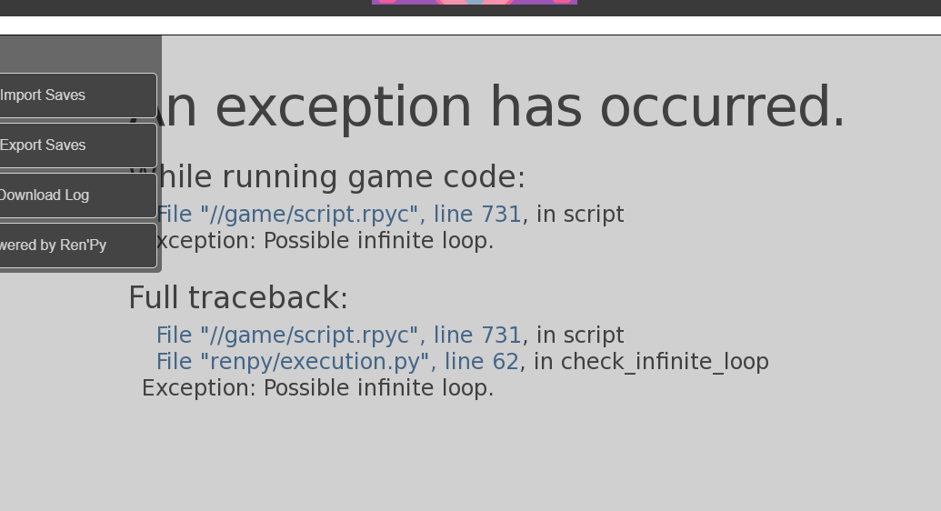 This was the first visual novel I tried in a long time, so I can't quite judge how well it is in that regard. I encountered the infinite loop error around the time after I swap "The Bully" and "The Victim" label and the protagonist questions if its the right thing to do, not sure if its the same one as someone else but here is the detail in the picture. Now from what I get to experience I do like the music and while the art could be improved, the essence is in the writing. I could picture the scenario playing in my head while reading the dialogue/script as if I'm reading a novel so I enjoy the experience!