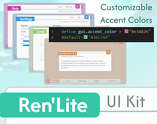 Lightweight pre-coded minimalist Ren'Py UI with a customizable accent color and optimized assembly for the gallery, etc.