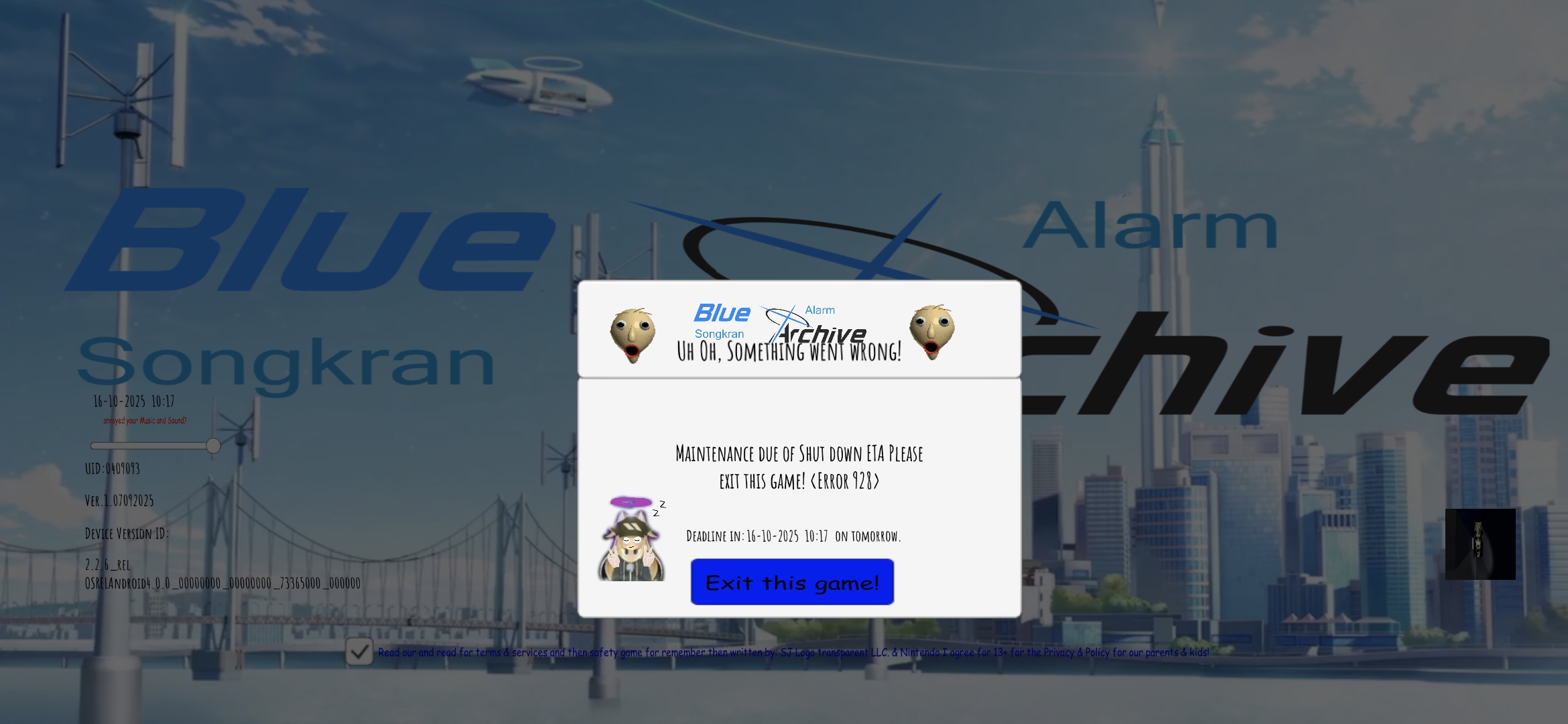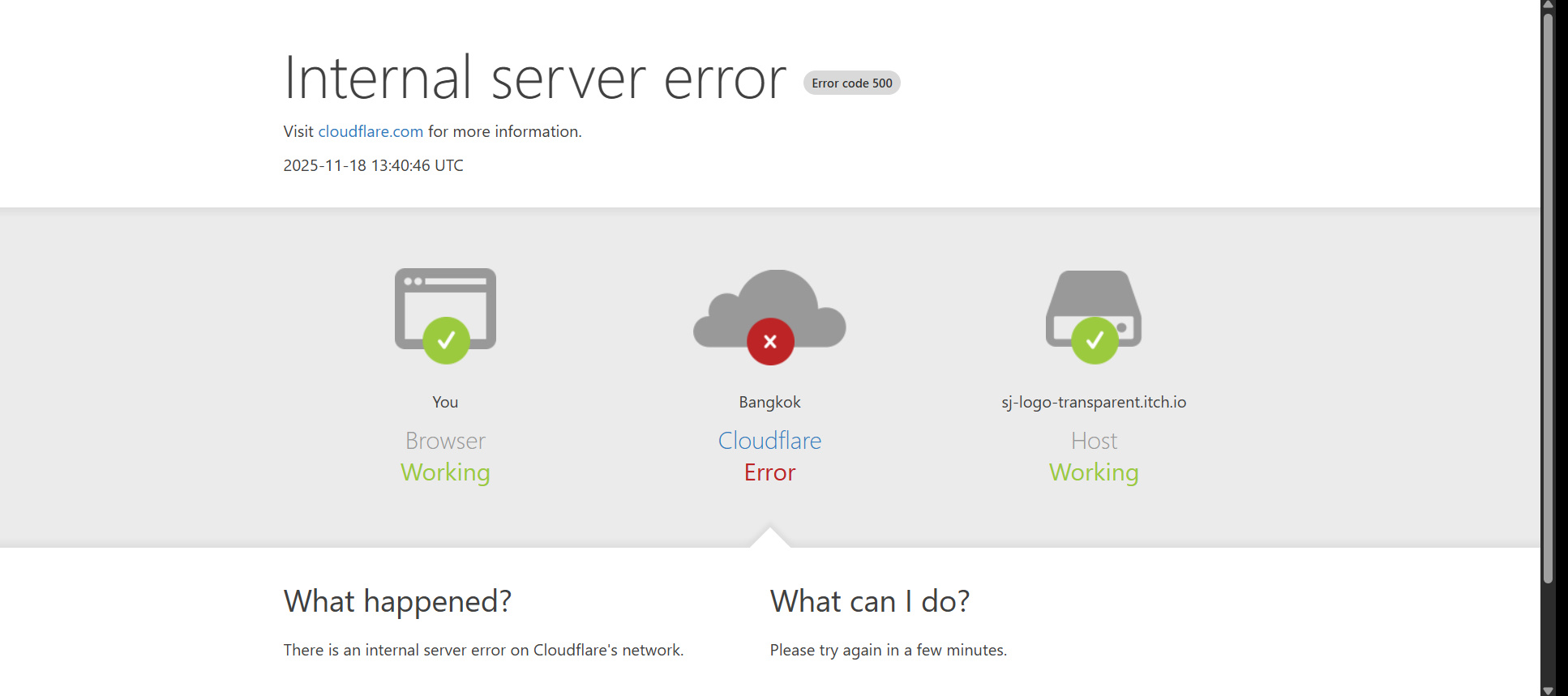 Dear, Players! this is a Cloudflare maintenance outage was took so long in 18-19 November, 2025 and but don't worry will be back online in this Baldi's Basics Songkran in Education and Learning (Blue Alarm Songkran Archive) at all. and games will be updated in this today. and get still enjoy at all :)