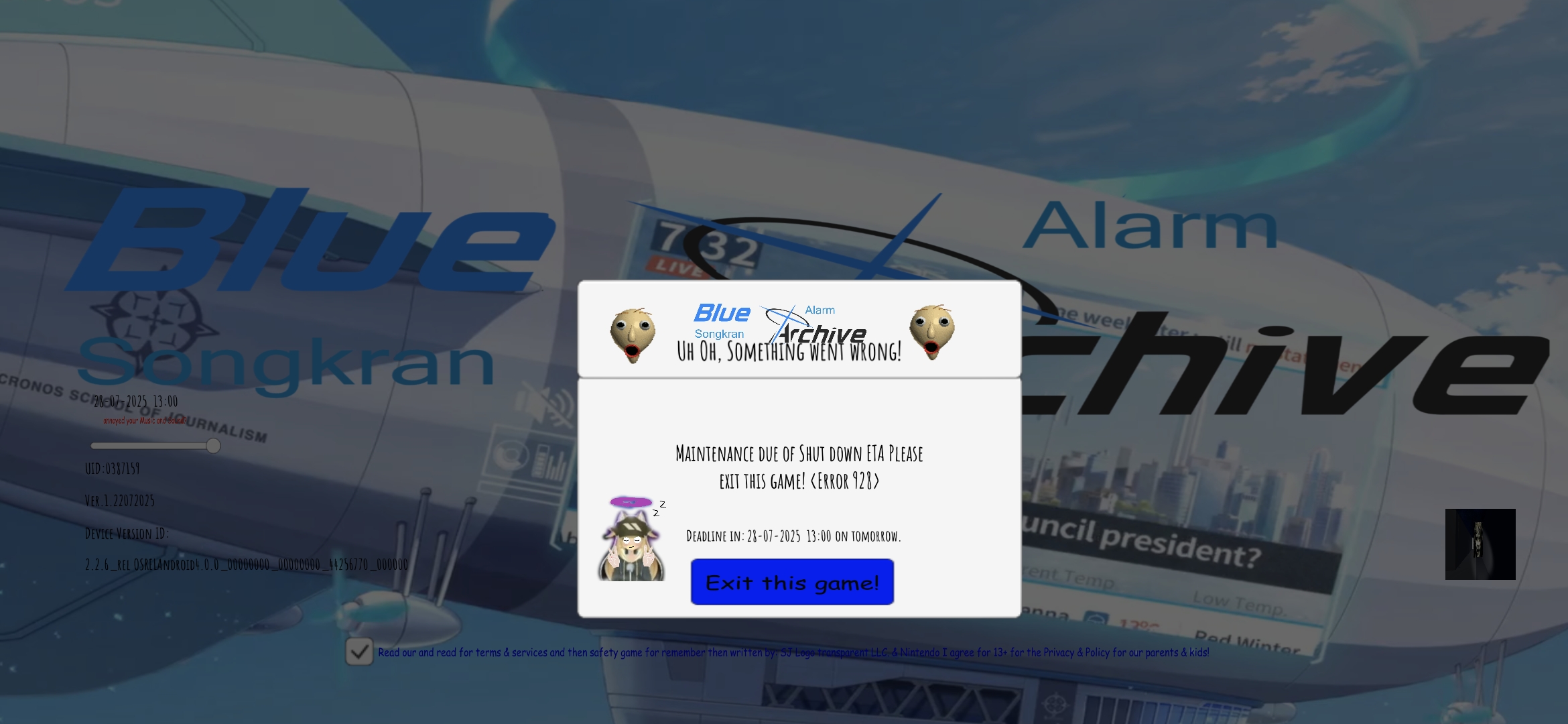 Hi, peempao2no1akarawin! thanks you to reaching out if you looking as pororo collaborations at all and thank you for supported we hope fixed this application problem now will be fixing is Baldi's Basics Songkran in Education and Learning has maintenance was being ended with 07/28 within' 4 hours, is application on server was opening in today sorry we just fixing after maintenance has ended in 5:00PM! if you see maintenance outage reported you can see to downdetector on website again. Please contact us: support@yostar.com we are sorry in this inconvenience Team Work of ASAP by: SJ Logo transparent LLC. & Nintendo!