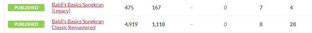 Dear, Players! my Baldi's Basics Songkran Classic Remastered was reached more 4,900 views and can i'm give me more with in 100 views. with reached more goal of 5,000 views. i will be updated soon in prior version of 1.9 in next future updates. which in available on 6 October, 2025. but i'm see people to reviews of my games. and thank you all everyone so much to playing my horror games.