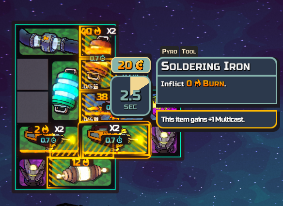 Also enemy burn never ticks down. I was wondering how the early game burner that should at most ever be able to peak at ~14 burn was applying 30+ burn to me. It's cause the ticks don't do the -1 at all. So it just infinitely stacks burn (slowly).