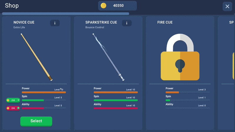 Start each run with a cue from the shop, each offering unique abilities to customize your strategy.