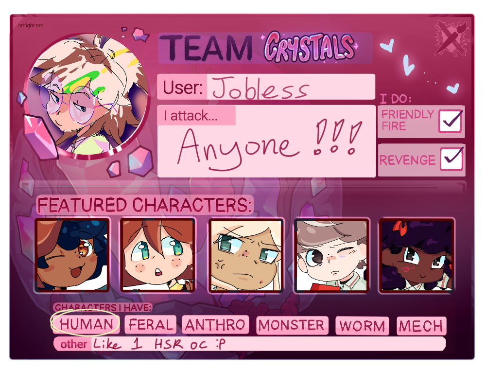 HELLO. HI. if anyone remembers me i drew artwork for like three people last year and was promptly never seen again. #mysterious. anyways if anyone has their mcs on their artfight profile PLEASSEEE reply to this with your artfight usernames i want to try and create a mini mass attack of purely our life mcs before the month ends. i have a vision. (here's my username and all that for reference!!)