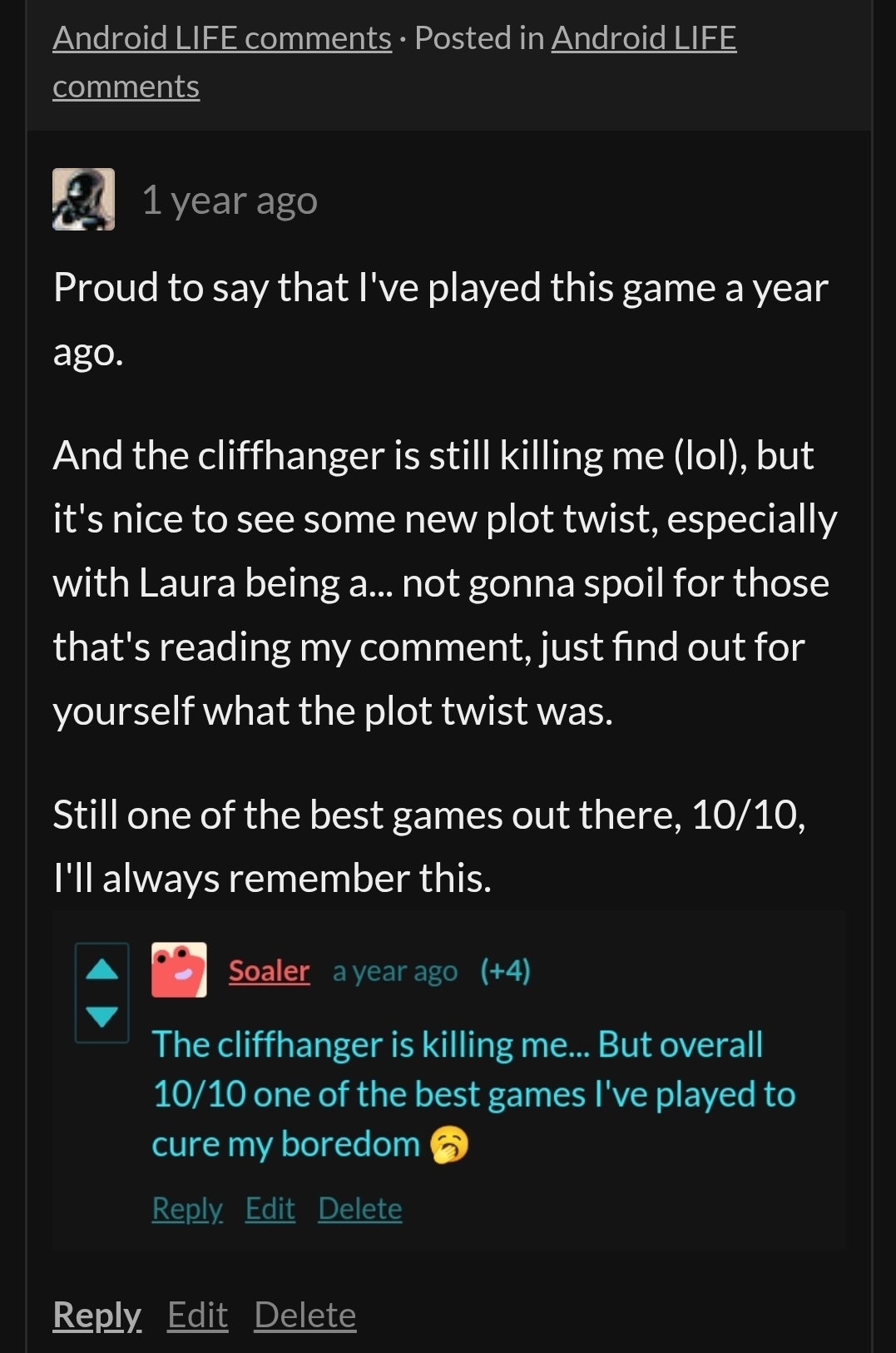 And the cliffhanger is still killing me (lol), but it's nice to see some new plot twist, especially with Laura being a... not gonna spoil for those that's reading my comment, just find out for yourself what the plot twist was.