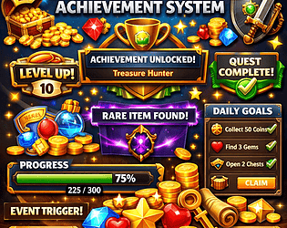 Collectibles, achievements, progress tracking, runtime UI.