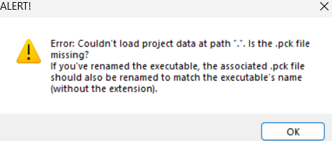 Hello! I was trying to play the game and noticed the pck file wasn't included. It ends up leading to an error when trying to start the exe.