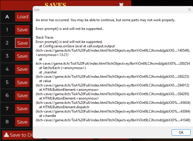 I play with the full game so i am not sure if this is a problem for just that, but some places there is no where i can press to continue (i can find it again if needed), once towards the end on nours route where there is both no words and no way to continue which is sad cause i want to continue to the epilogue. also i can only save to my disk and get an error when trying to save in the slots provided (i wish take a screenshot of that soonish)