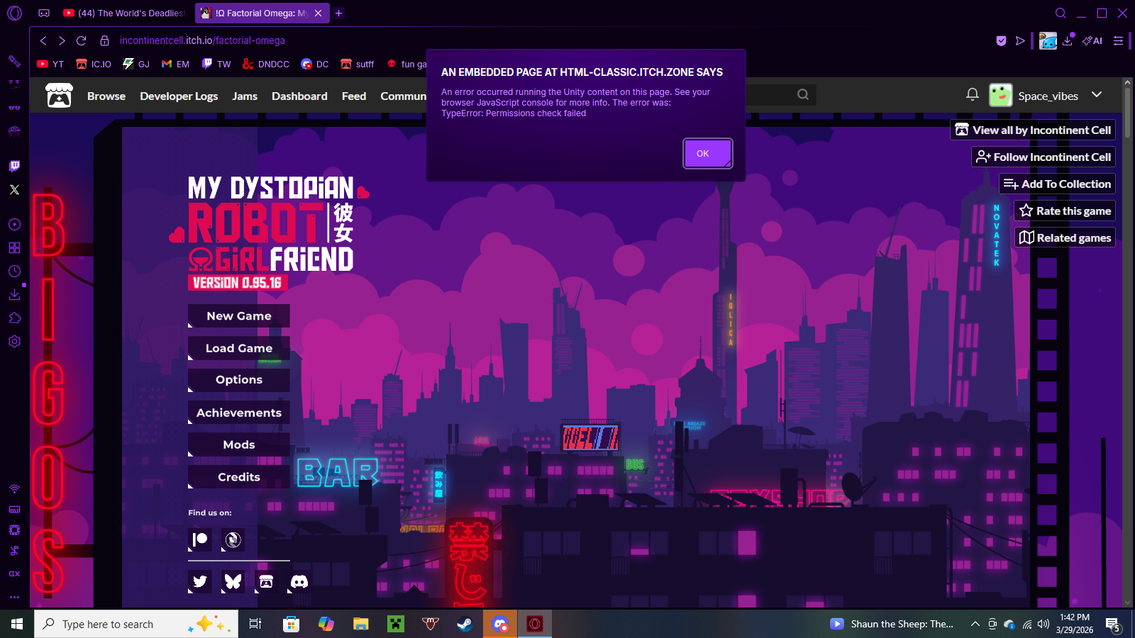 !Ω Factorial Omega: My Dystopian Robot Girlfriend community · Created a new topic All of my progress disappeared