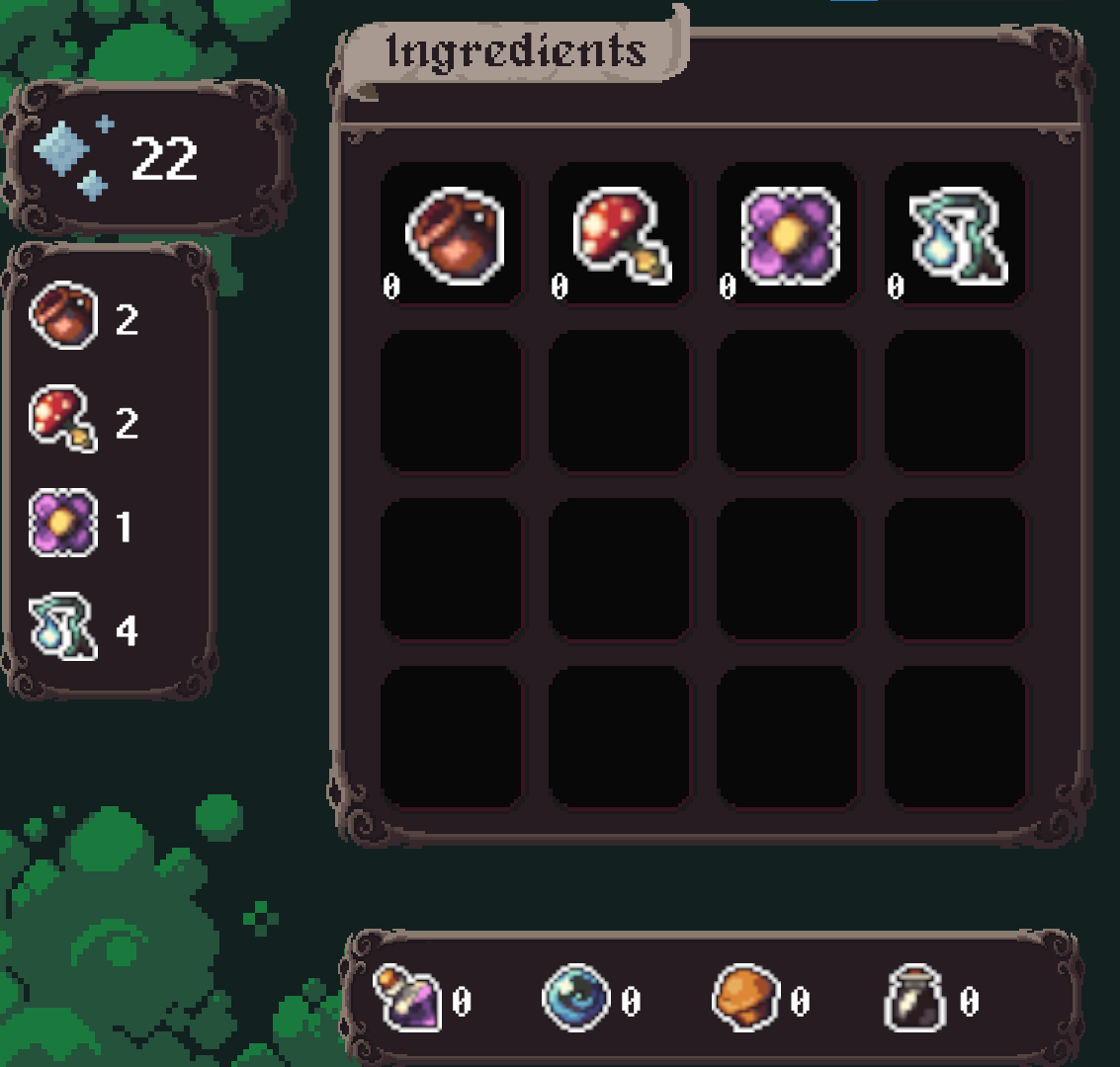 2. When i bought missing ingredient in the shop, i could not spent it on mixing potion, but also counter with ingredient updated after it was bought.