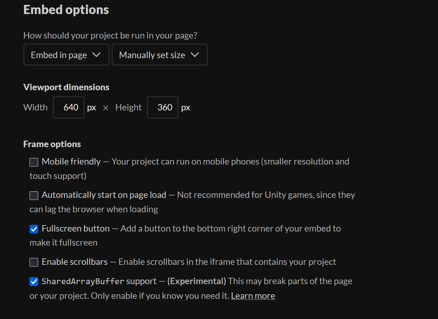 if it helps, for all my Godot submissions I tick these boxes on itch, and it does help with the fullscreen