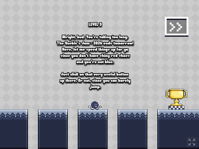 dinhoinz, this might be the best New Year SkillUp Game Jam I've ever played. For starters, the artstyle. It's so simple yet versatile and impactful, and the music compliments the artstyle very well. The gameplay is really unique, as you're basically trying to climb your way upwards while avoiding the "immune system", whether it be a worm, a triangle, or a jellyfish-like creature, they all have different jump heights that, when freeing them from possession, they give you a bit of an aerial boost that can definitely help if you're trying to reach a high place or cross some tricky gaps. I did get stuck a few times during my first few runs, but that was on me. Overall, 4/5 stars! ⭐⭐⭐⭐. Outstanding work, dinhoinz!