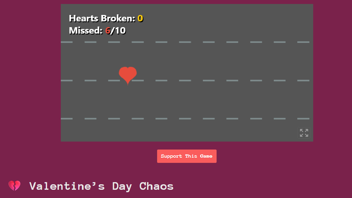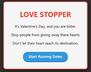 Please try out this very short heart break game made for fun https://spudxlab.itch.io/love-stopper . You just need to stop the heart from reaching its destination