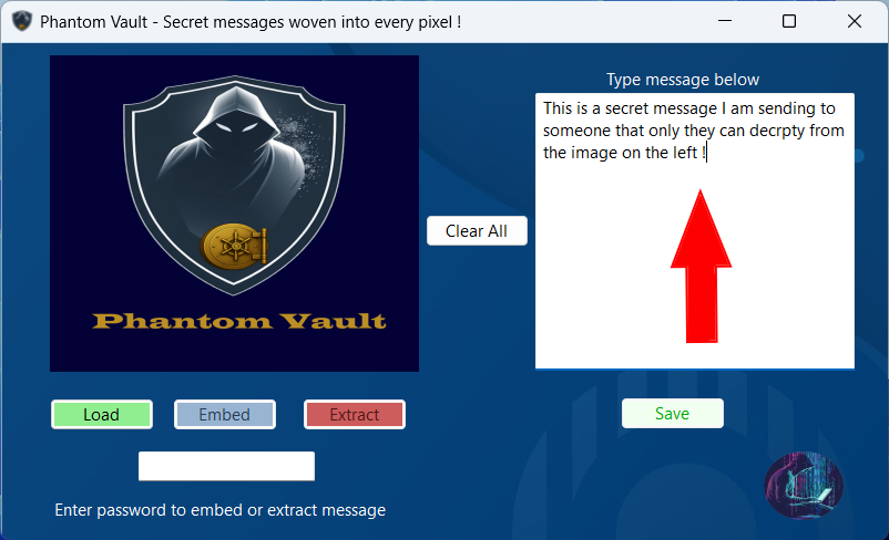 It hides encrypted messages inside ordinary images with complete invisibility. Using strong AES‑256 encryption and subtle LSB pixel embedding, it ensures your information remains protected, concealed, and recoverable only with the correct password. The resulting images look unchanged to the human eye, making them ideal for discreet communication or secure data storage.