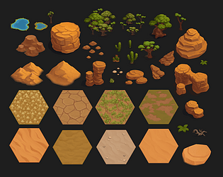 You can use these hexes and objects for your RPG game, strategy or board games visuals.