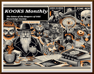 KOOKS Monthly is an eZine offering free, fresh, and intriguing content for Indie tabletop role-playing games inspired by or derived from Microlite20 and other Rules-Lite systems.
