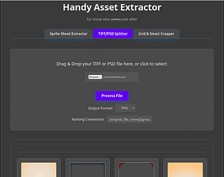 help devs in Sprite Sheet extraction, TIFF/PSD splitting, and Grid Cropping.