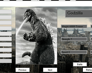 The Kaidex is a kaiju indexing and ranking program, it also has a battle simulator.