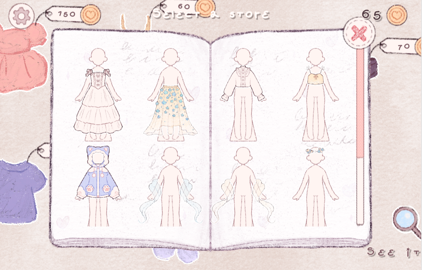 - I don't understand how shopping is supposed to work; there are multiple stores, but clicking any of them just shows me a generic spread of items that seem to just indicate categories -> clicking them instantly causes me to spend money to buy a random thing -> there's a magnifying glass in the corner that shows me a book of cool items, but clicking them does nothing? What's the points of that book?