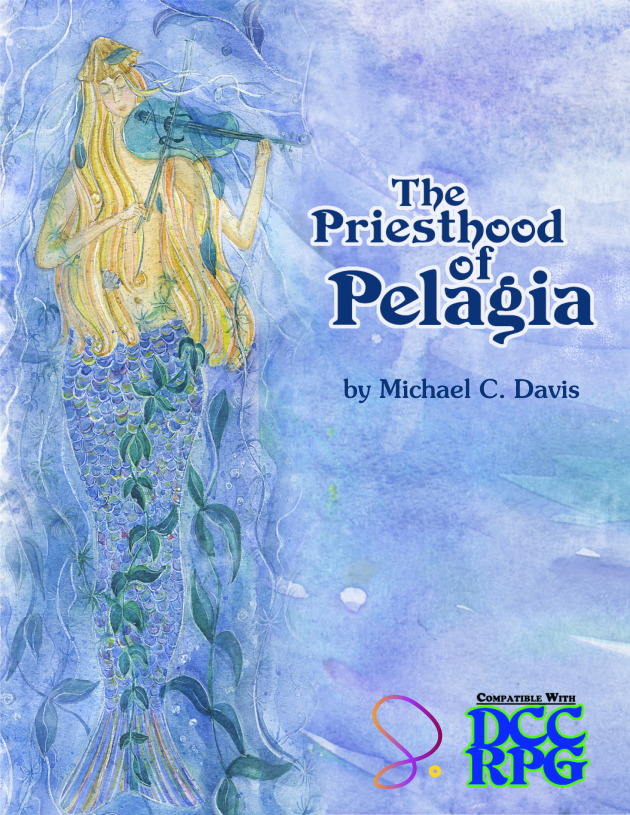 The goddess Pelagia gets barely five words of description in the DCC Core Rulebook (“Neutral goddess of the sea”). I thought she deserved more, so I wrote this 17-page supplement detailing her creation myth, the philosophy of her religion and the special powers of her priesthood.