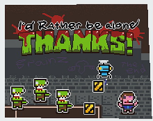 I like it! The writing is comedic and the characters look pretty good. The battle with the fire character felt pretty intuitive and engaging, though I don't think the melee works as intended, else it's a skill issue and I need to get good. Very cool, considering the time constraints, though I'm not getting the theme of isolation!