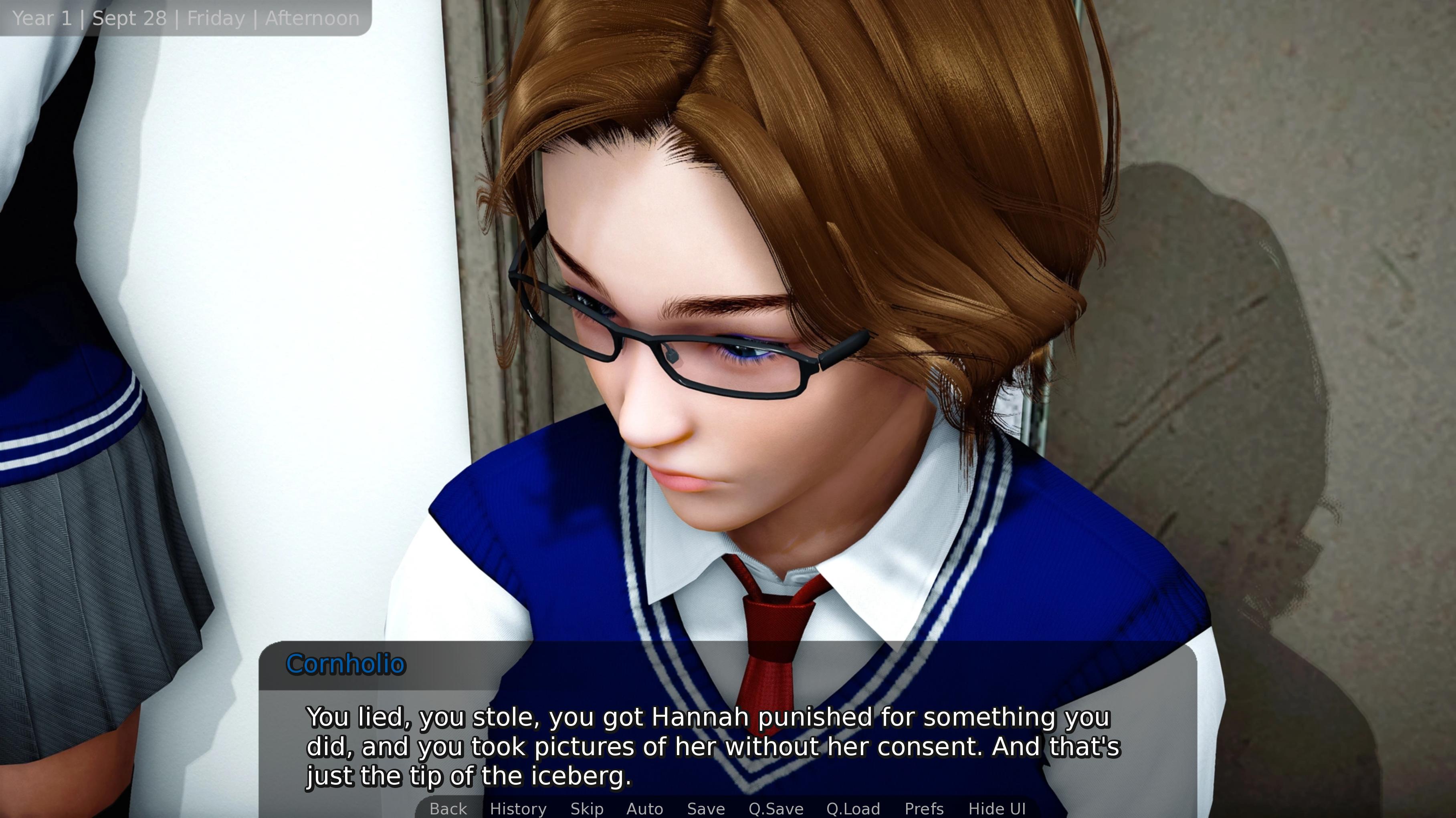 And then there is Alison. Alison warned the MC of Rachel early on. Alison even said the no poster rule in school was created specifically to stop Rachel. She knows Rachel is insane asylum level crazy. As the MC's advisor she should slap sense into him for even considering Rachel, not to mention also blacklisting Rachel if she is the MC's girlfriend at the time. If Alison can't convince the MC to never trust Rachel, it undermines all her credibility as an advisor.