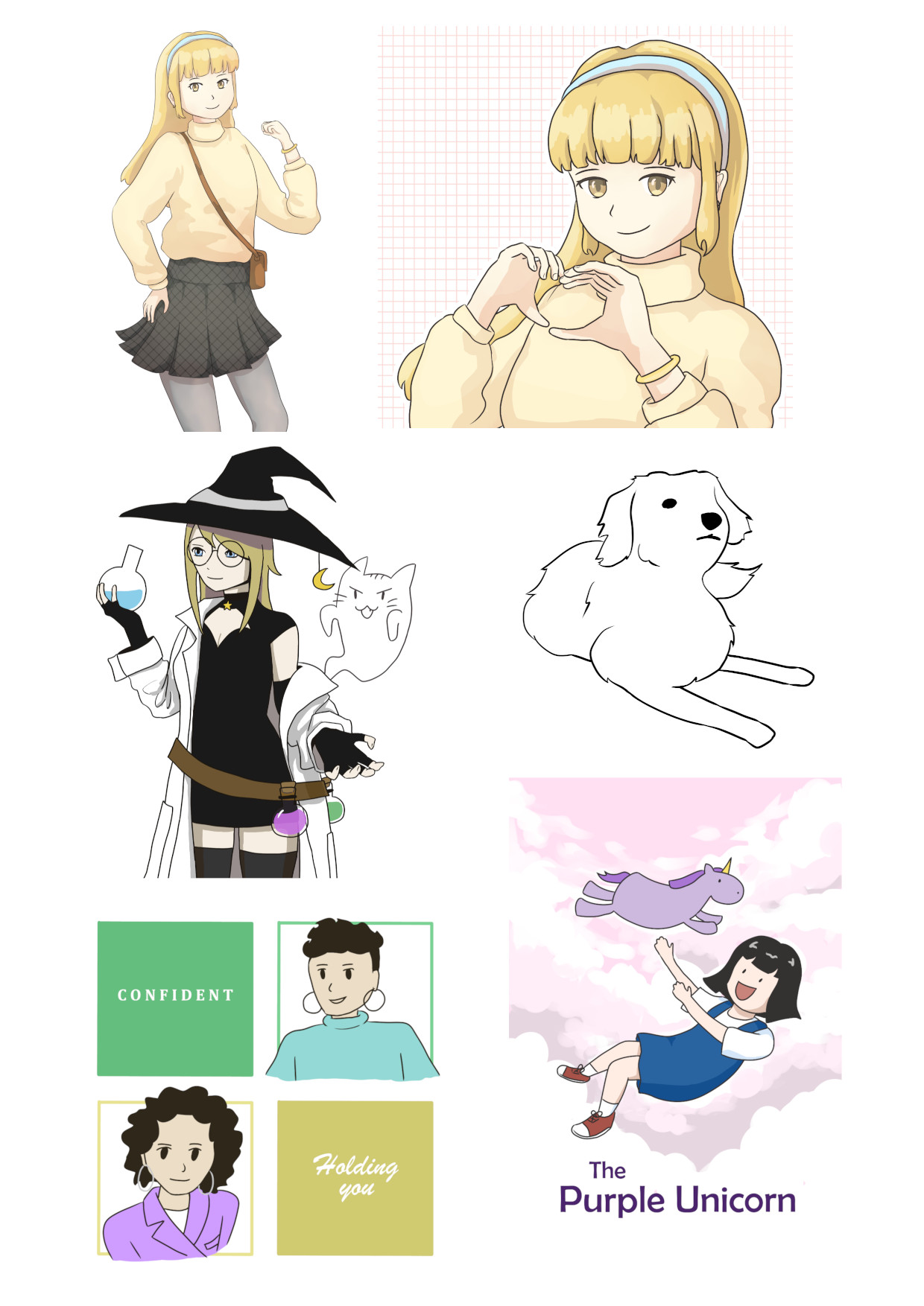 Of course! Here are some of the stuff I've made in the past two years or so. The most recent ones are the first two which are for a visual novel that I've been working on in Ren'py.