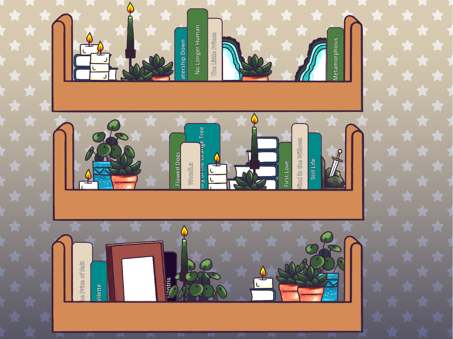This is so cute! Here's mine! (I wish having candles near books was more practical so my irl shelf could look like this lol!)