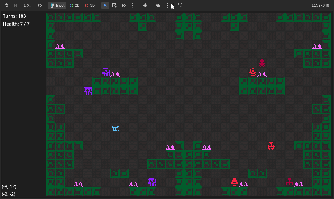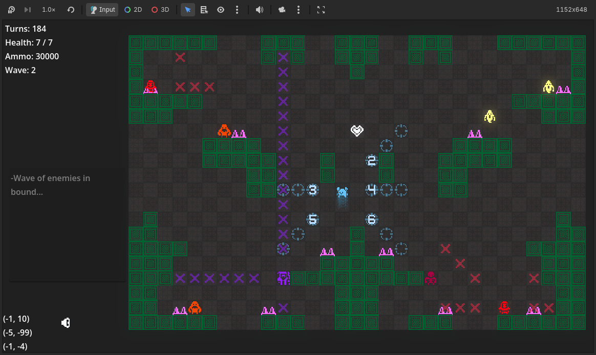 Still managed to add quite a bit, such as targeting and shooting projectiles. Enemies are recognisably different. Added a few items. Copied over a log messaging feature. Added Godot's new AudioStreamPlaylist that makes handling background music so trivial it doesn't even need a script!