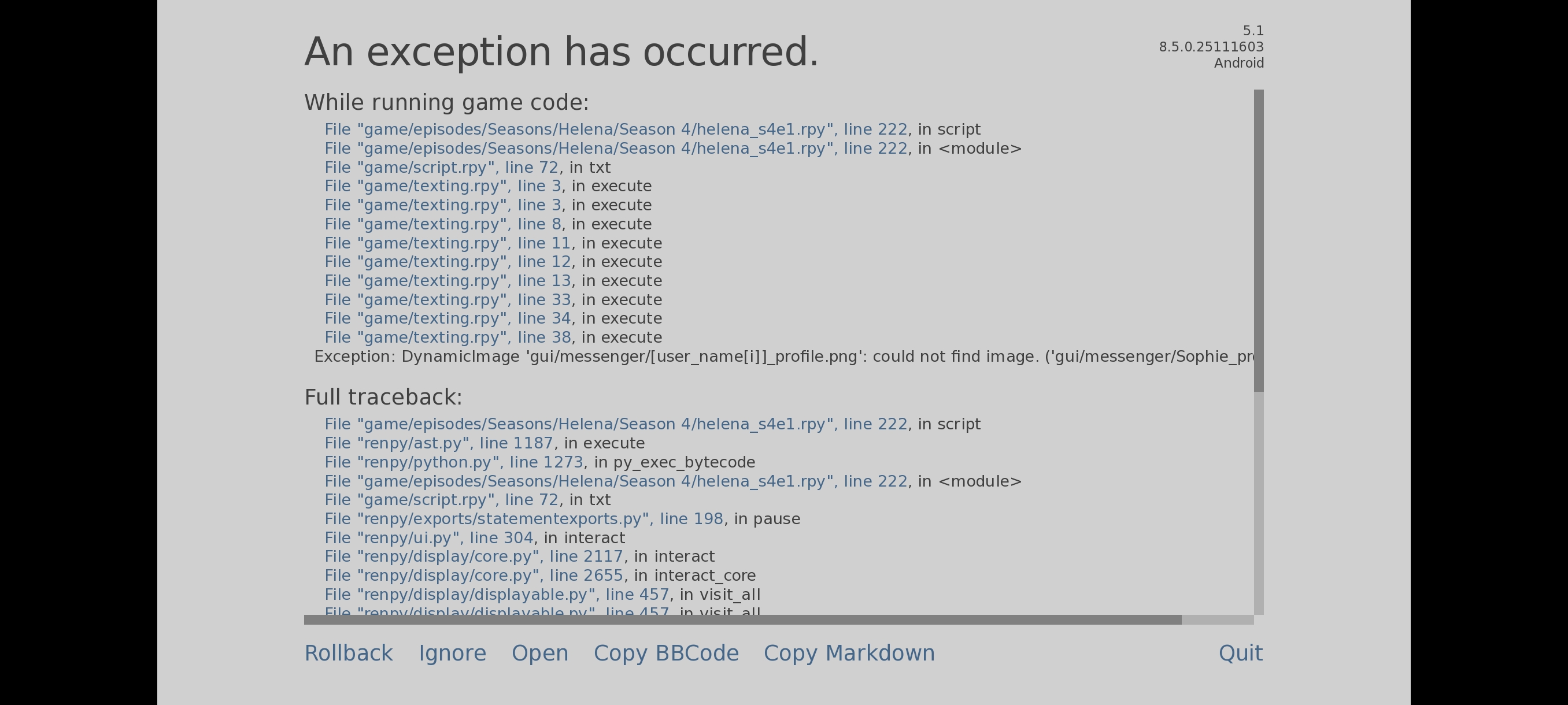 In Helena's season 4 EP 1, some scenes cut off and this appears and it happens a few time until the episode ends (i think). Also there are quite a few moments in, almost all of the seasons, where Helena's model teleports up and cuts of. (I can probably track them down later if you want the exact ones)