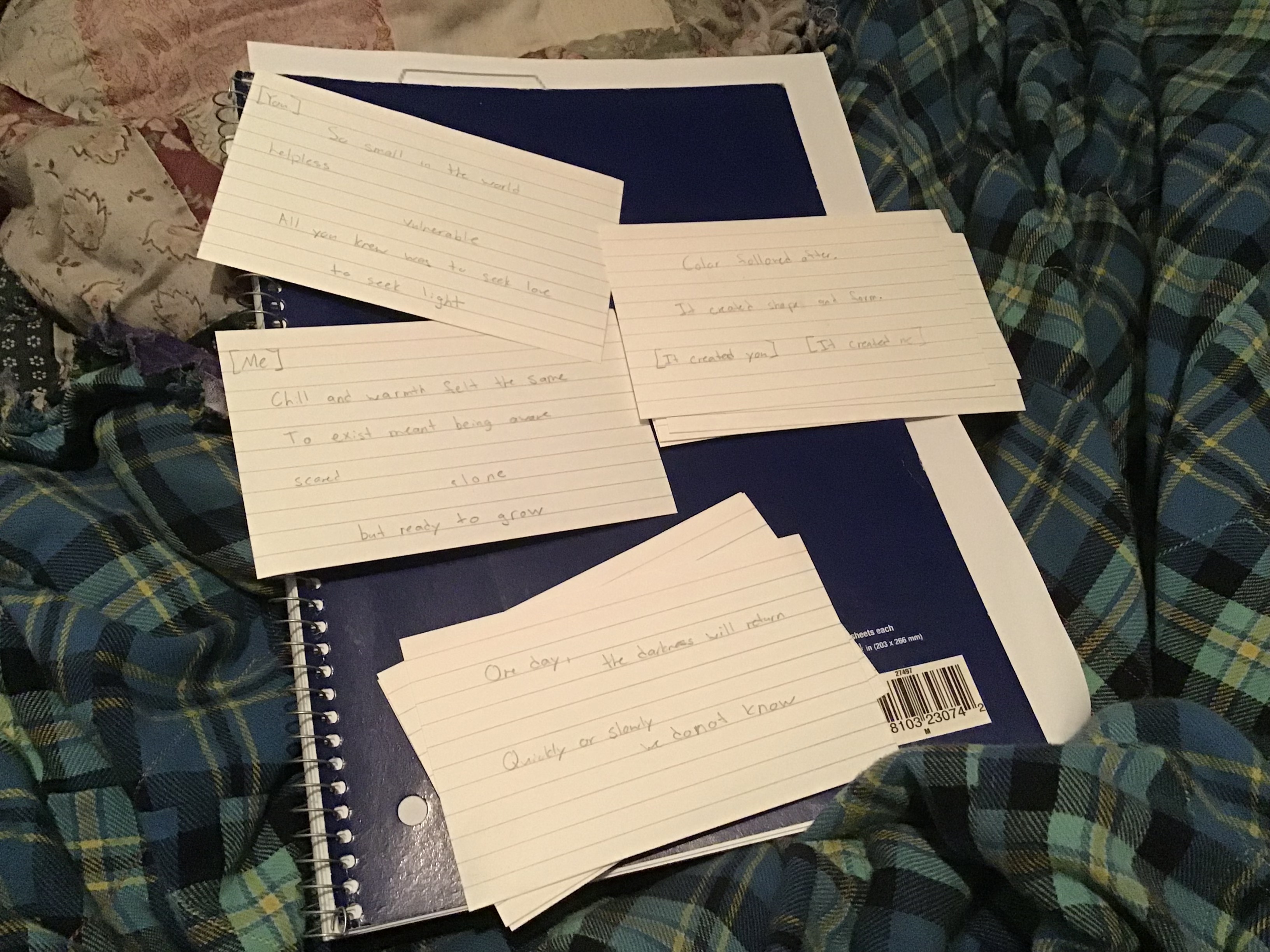 Took me a bit, but my story is all written out. I like writing with pencil and paper when I’m going through a writer’s block, and gave myself the challenge of using 10 notecards to tell the story because Decker is like a collection of notecards anyway. I think it helps with my soon-to-be text placement.