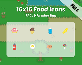 Vibrant 16x16 pixel art food icons. Perfect for inventories and crafting in RPGs, Farming Sims, and Survival games.