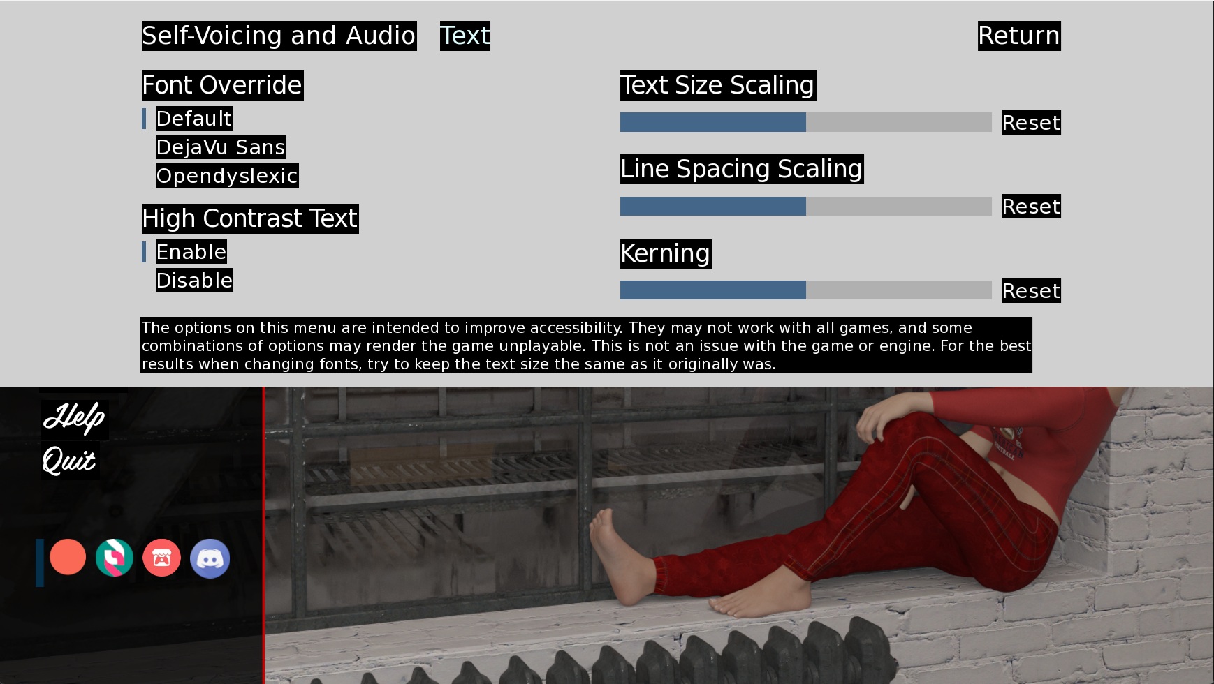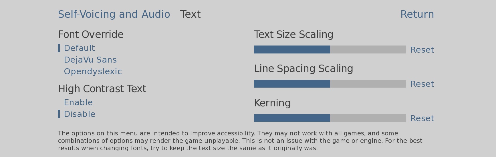 As for the highlight text, I didn't modify or removed any of the accessibility options (at least not on purpose). I'll add some for you (and others of course) in the next version. In the meantime, if you enable the developer's console (Shift+O), and type: