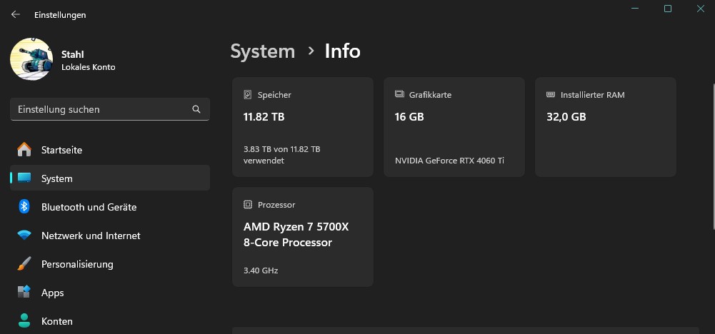For now I really appreciate your reporting, maybe one more thing that could help me pinpoint why different PCs are affected so differently: Could you share your hardware specs? Specifically this info, which you can access from the system settings (my system is in German, but we have the same Windows version so your menu entries should be about the same regardless of language)