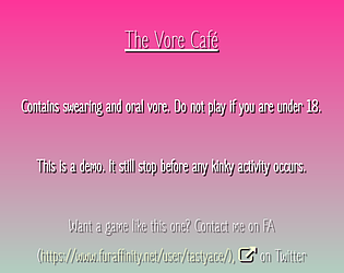 The game’s cover is a custom piece by Misscaine ( https://aryion.com/g4/user/Misscaine ).