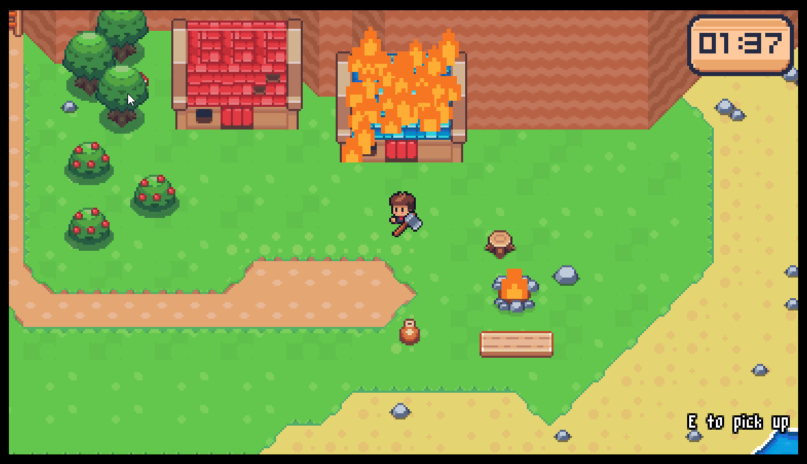 I did get stuck on this axe on day 3, I picked up the axe and the poison and then went inside the house that was on fire (totally fine on inside) loved the banter of the guy in there talking about the GameJam and the innuendos are great overall! But when i came back outside of the house the axe and poison i had just grabbed respawned, so i went to go snag them a 2nd time and got stuck on the axe shown in the image haha. Overall fun idea and love the creativity!