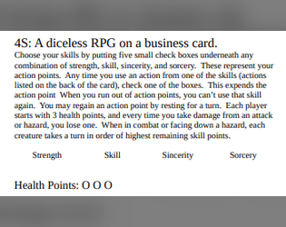 A take-anywhere rpg that gets around those pesky dice by having the heroes get tired a lot.