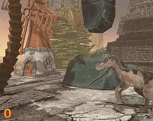 Collect the gems! Marvel at the velociraptor! Jump! Press "F" to hurl a red ball!