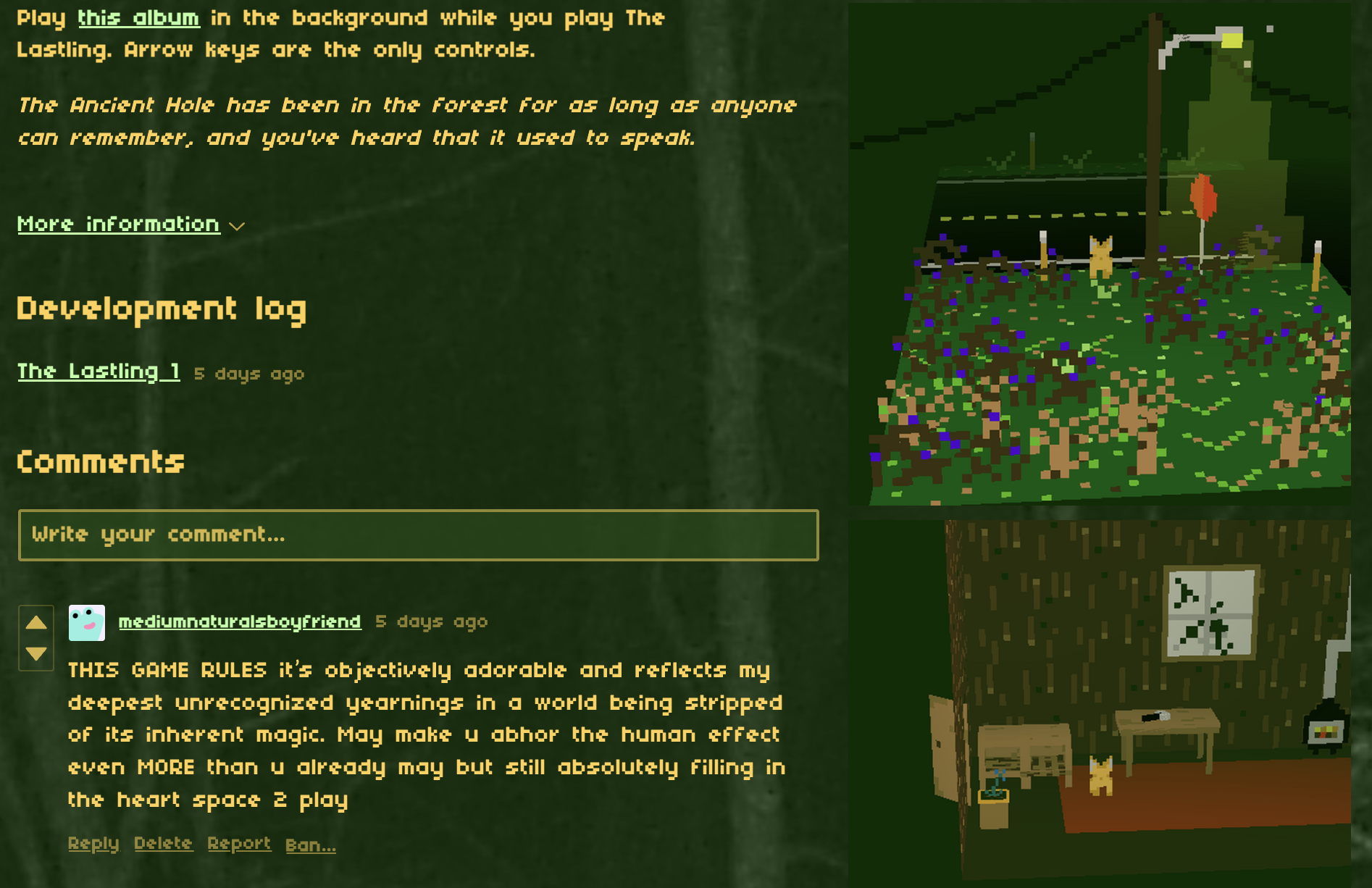 There's an ancient hole, its Bitsy 3D, there's a french duck and the ghost of a pocket gopher, and a wizard.
