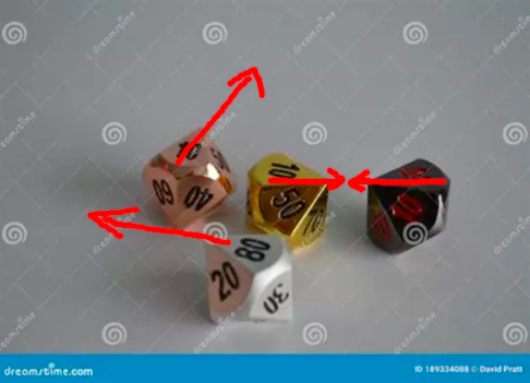 1. The pointed direction changes based on the d10's position on the table. On a standard d10, two sides of the die face should taper into a kind of arrow. Generally this is the opposite direction from where the d10 would look right side up. Move in that direction. Here is a quick chart: