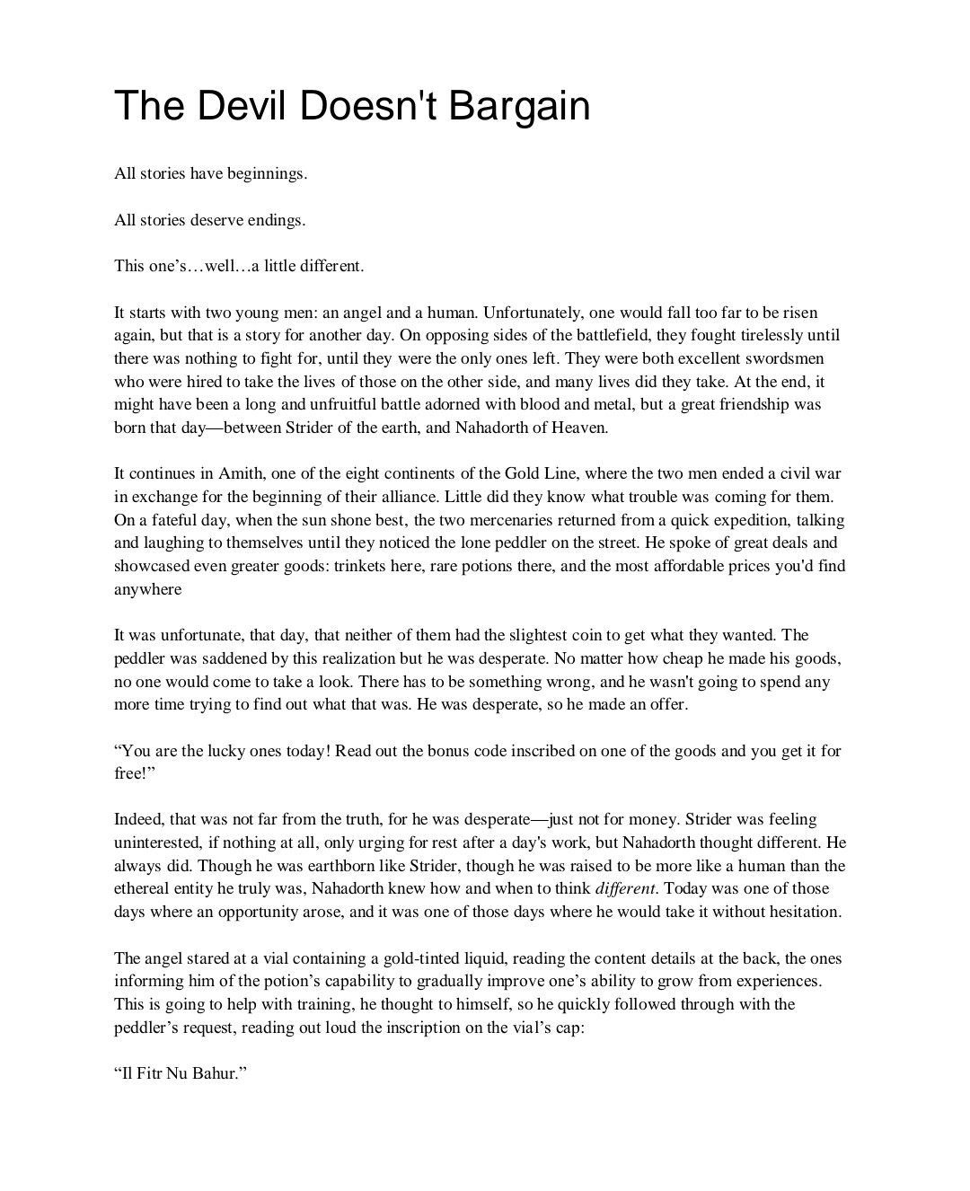 Thank you very much, Aleks. It's the most thoughtful feedback I've had since the game released. I feared that the plain state I left it at would make it harder to market, since there's nothing to drag the eyes in unless one actually takes their time to read it. I could've waited for my co-designer to handle the visual aspect but he's unavailable now. If I did wait, I would've never released it, so I don't regret that part. The lack of knowledge from people in my area regarding TTRPGs most likely also played a factor in the marketing difficulty. I'm trying to bring the people out and into the genre, using this as a first-try thing. Might work. If it doesn't, I'll be back to the drawing board once again.