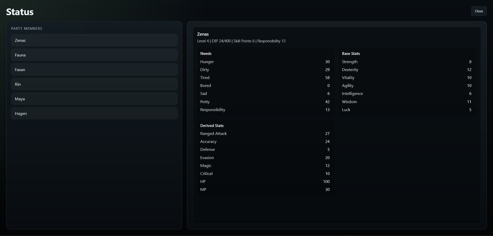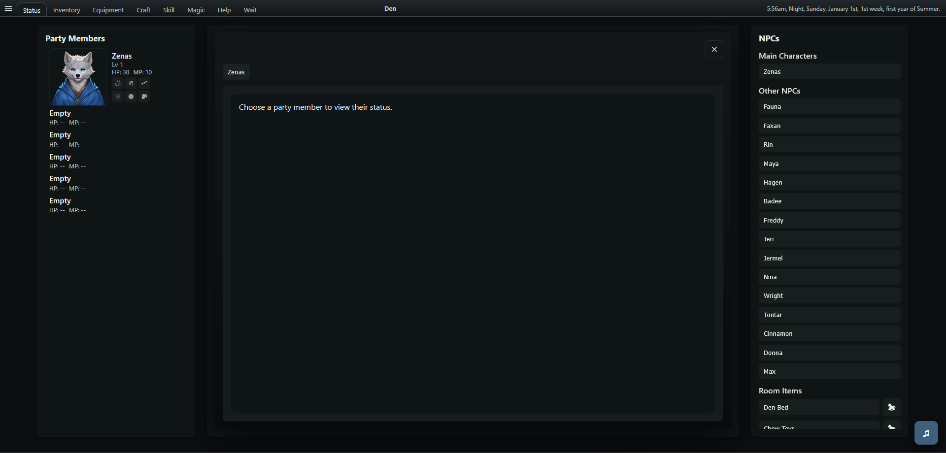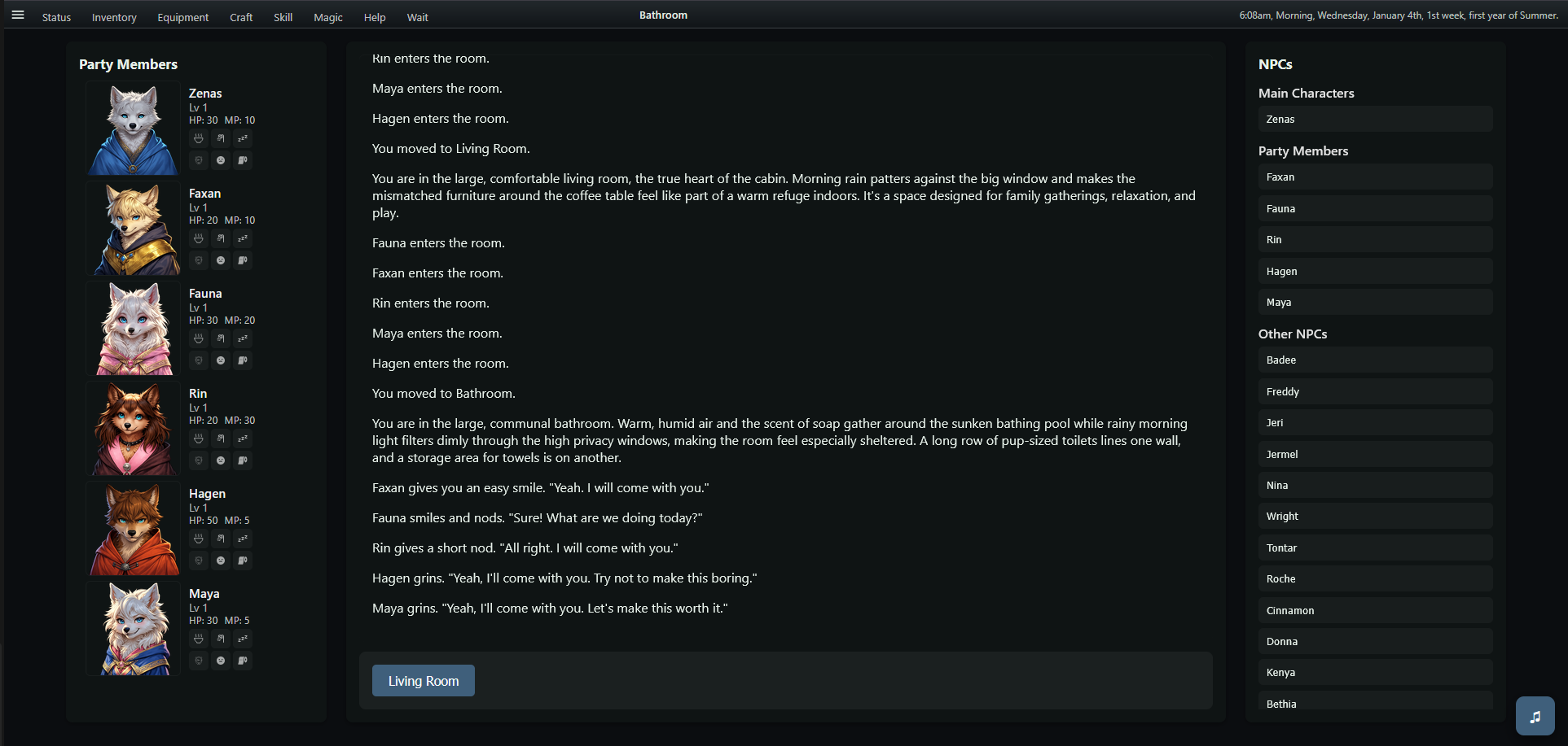 Fauna, Faxan, Hagen, Maya, and Rin now hang out in the living room every night from 7–9 PM.