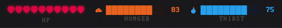 later, as your systems get refined, i'm positive that super cheeses will allow me to eat and drink more than what is now '100%', thus showing/using the actual HP on the main screen would make great sense.