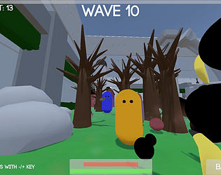 Throw random “weapons” at waves of colorful enemies who are all out to get you!